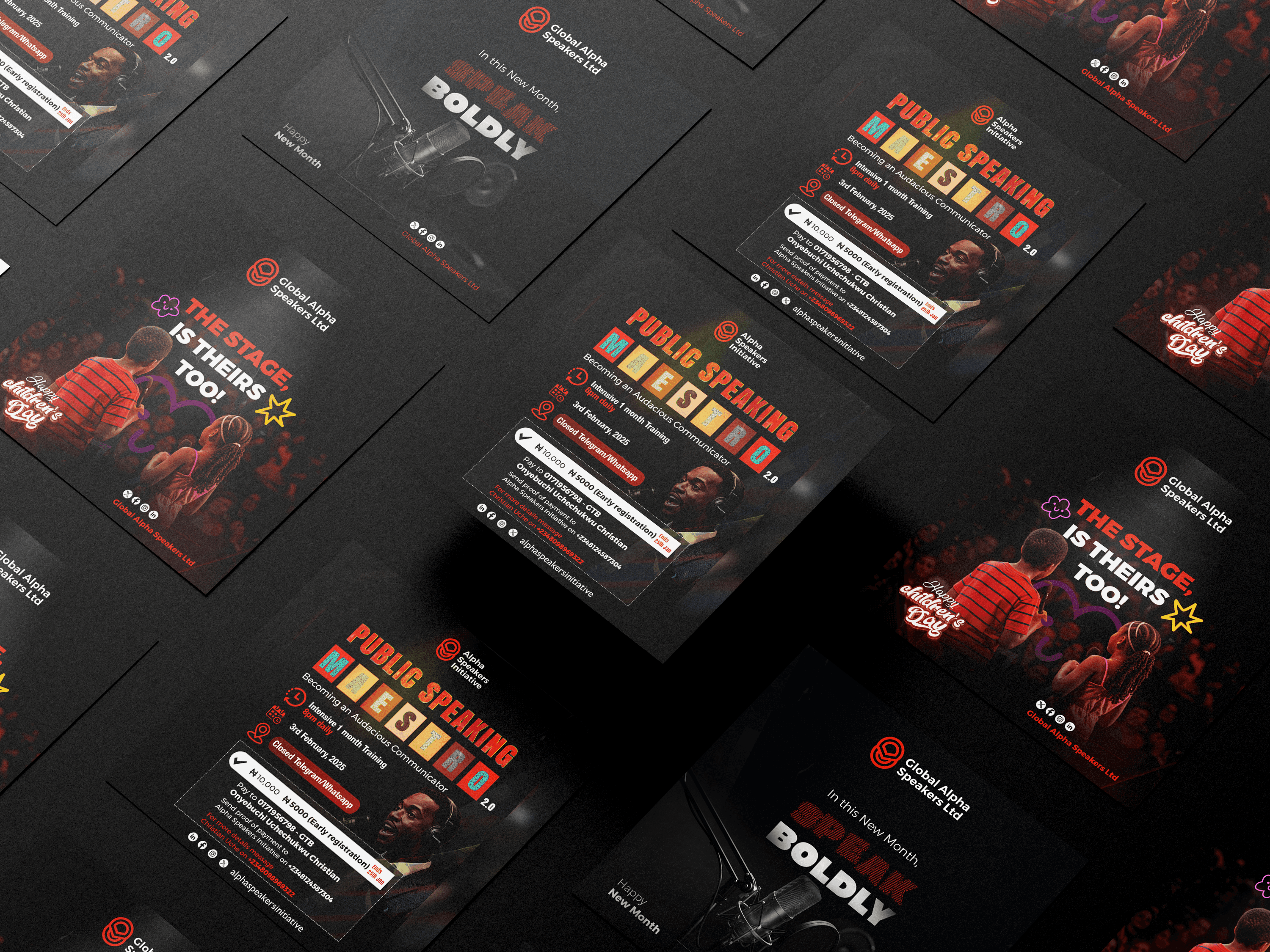 Design has taken me into exciting spaces, each brand with its own vision. For Tulips Delight, I created a full brand identity and logo that set the tone for their official launch, giving their audience a sweet first impression. With SwillExpress, a marketing brand, I delivered a logo and identity system alongside sales flyers created to convert. The designs didn’t just look good, they performed. As the volunteer design lead for Alpha Speakers Initiative, I develope bold visuals for workshops, trainings, and social media, supporting the mission to inspire the next generation of speakers. These collaborations reflect my commitment to helping brands show up with clarity, confidence, and visual impact.